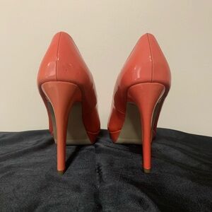 Step out in style with these vibrant pink patent leather heels by Madden Girl. Perfect for any occasion, these shoes add a pop of color to your outfit. Some light sun fading and scuff marks. Size 9.
