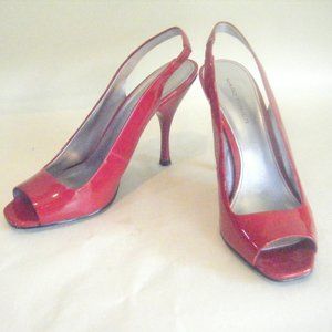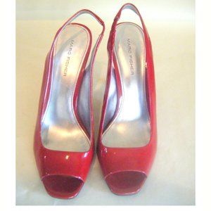 Gorgeous pair of red patent Marc Fisher pumps. Peektoe and sling back. Heel is approximately 4 inches tall. US ladies size 6. Hardly worn. Recently unpacked after years of storage. In great condition. In original box. Price firm. Thanks for shopping.