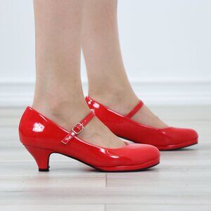 Red Patent Rockabilly Vintage Style Round Toe Kitten Low Heel Shoes