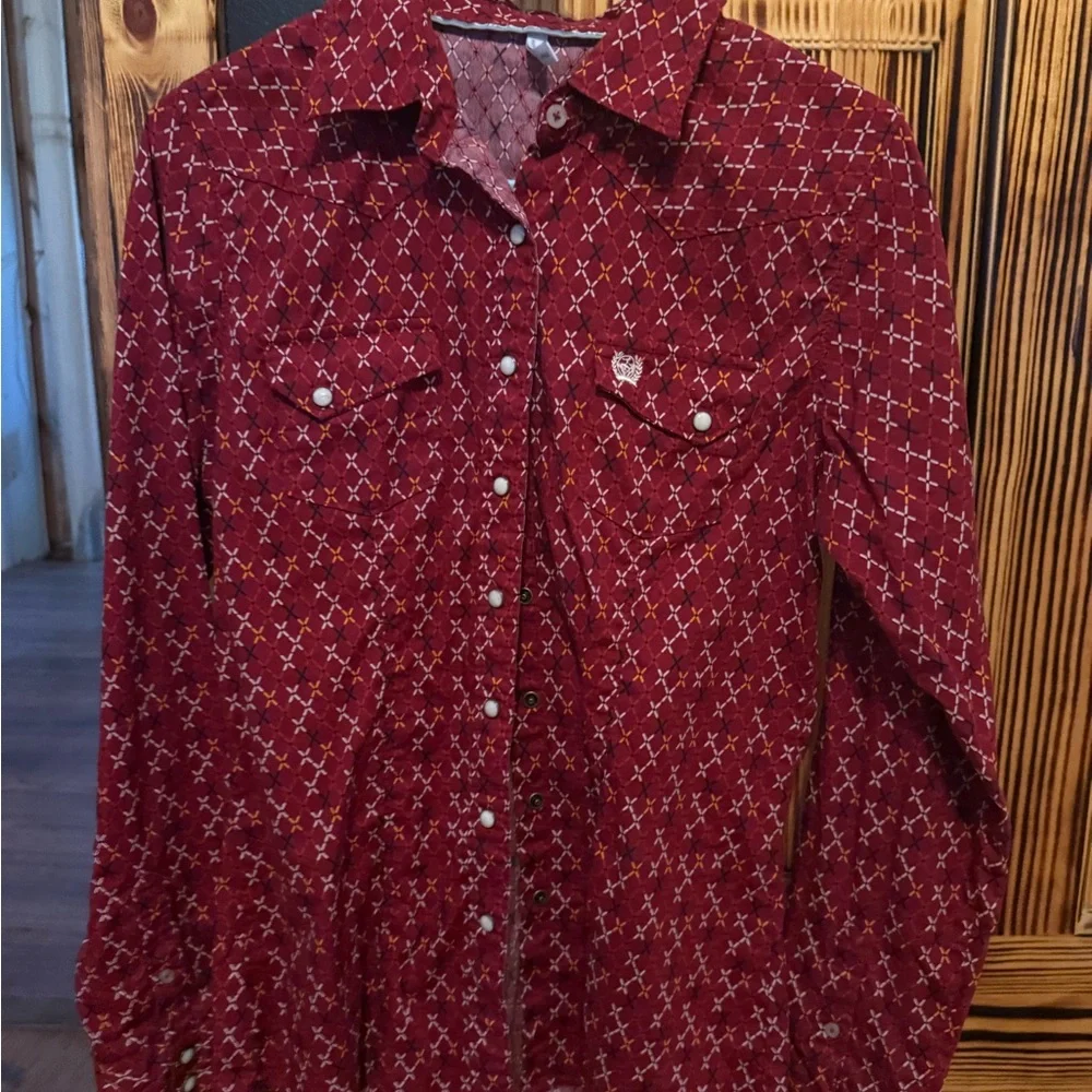 Red Patterned, Cinch brand, button down rodeo shirt, Only wore once, in great condition, size medium, make me an offer!