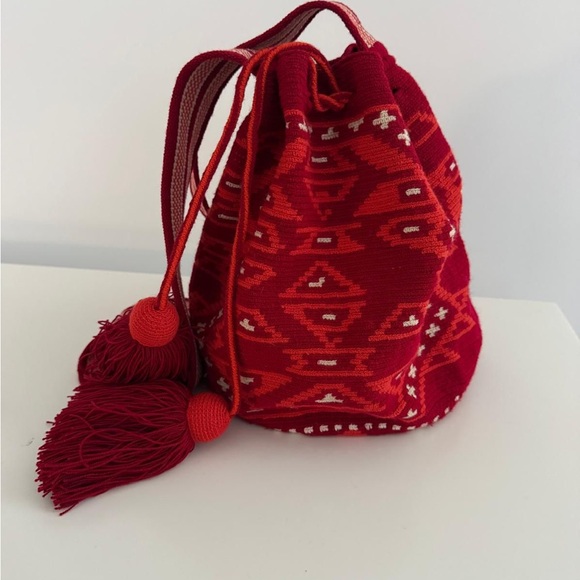 Handmade Mochila knitted pattern red and orange