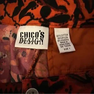CHICO’S DESIGN Red Straight Leg Pants with different patterns in black and green ish colors. It has two spacious pockets, one on each side. Waistband is stretchy. Fabric feels lightweight and breathable. Pre-owned. Great Condition.