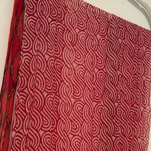 Elegant red scarf with intricate patterns. Perfect for adding a pop of color. Aprox 46” long, sheer, great shawl over a dress. Shades/hues of red.Tub6