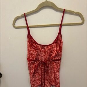 Chic red top with geometric pattern. Ideal for stylish outings.