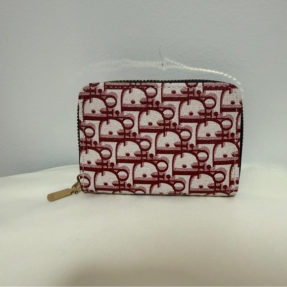 Stylish wallet with a red pattern. Features a secure zipper closure. New. Size: 4.25” x 1” x3”