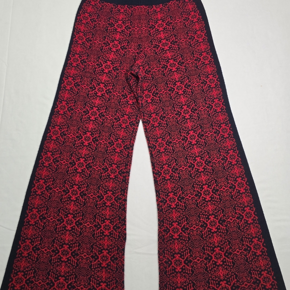 Red Patterned Wide-Leg Pants