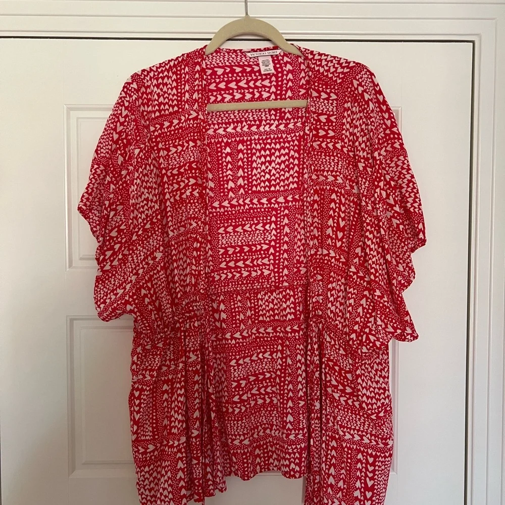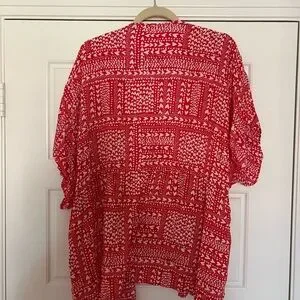Chic red and white robe with intricate patterns. Lightweight and great for getting ready/bedtime