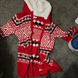 Stay cozy and stylish with this vibrant red patterned sweater. Perfect for adding a pop of color to your wardrobe.