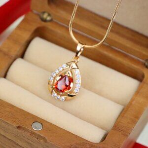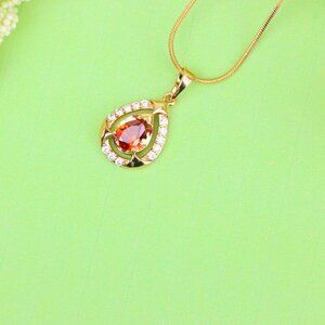 "Red Pear-Shaped Pendant with Gold Finish and Dazzling Accents, XPPT1802