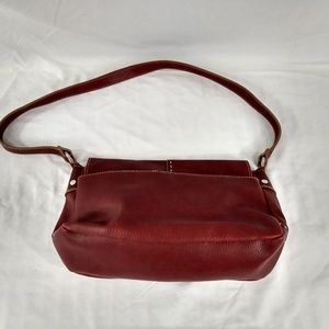 Red Pebbled Faux Leather Bag Heavy Stitch 13X8