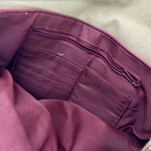 Really nice looking red pebbled faux leather bag. The faux leather is a very realistic one, hard to tell it isn't leather. Bag Measures 13 X 8 X 4 with a 15" strap drop. This bag is clean and in good condition overall, 9 of 10. Magnetic clasp, inner zippered compartment. Zippers work well. Attractive bag. Great item to bundle. This bag does not have a brand name on it. Material is PVC. Poshmark Bin #3