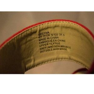 Never worn red peep toe ankle boots with gold button.