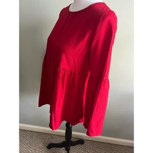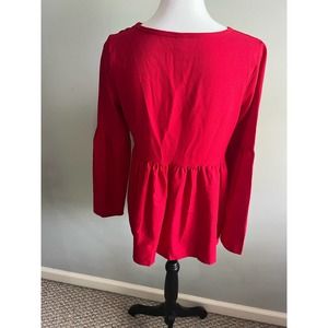 Red Peplum Ruffle Blouse Womens Top by Coral Size M Pullover