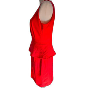 Red Peplum Sheath Cocktail Dress V-Neck Sleeveless Knee Length Size 10 Badgley Mischka