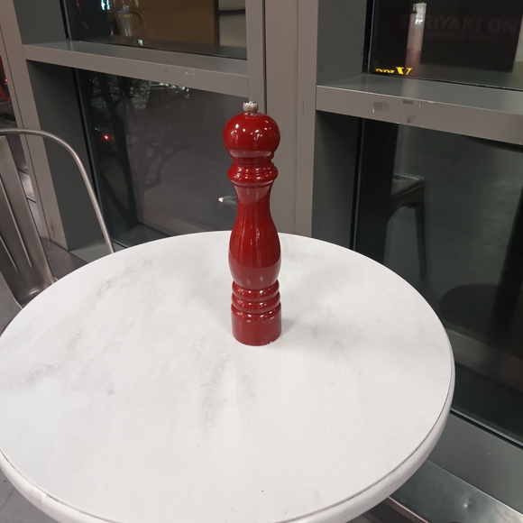 Elegant red pepper Peugeot grinder. Perfect for kitchen decor.