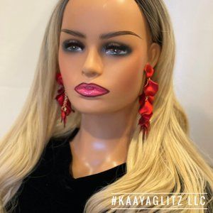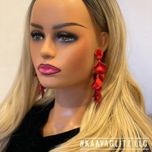 Stunning Red Petal Rose Flower Long Dangle Earrings!