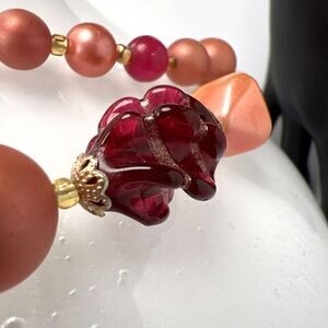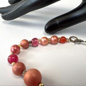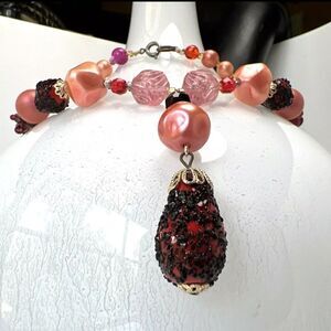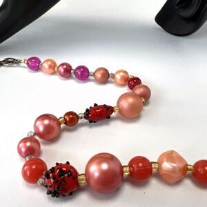 Vtg Czech Uranium Red Glass Wedding Cake Pink Glass Lucite Beaded Necklace 28"