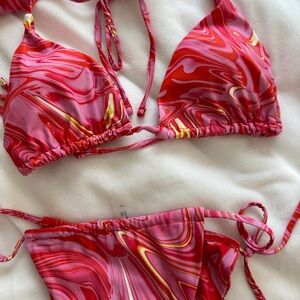 Red & Pink Marble String Bikini Set