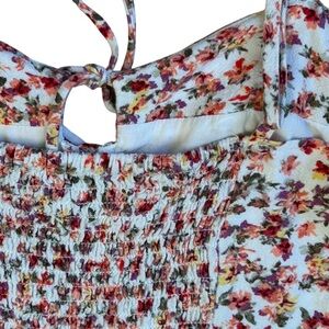 Red Pink Orange Mini Smocked Floral Spaghetti Strap Dress Medium