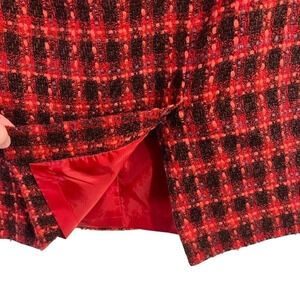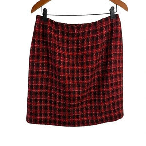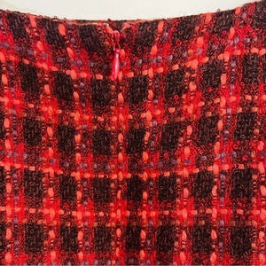 Red Pink Plaid Tweed Skirt Size 10 Knee Length Pencil Business Career Office Fall
