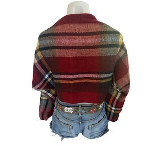 Red Plaid Blanket Kimono Shrug Unique Handmade One Size Boho Black Soft Cozy