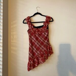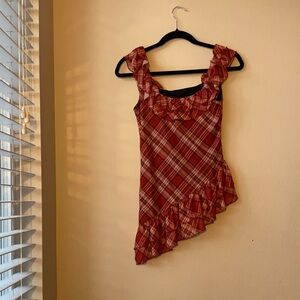 Red Plaid Ruffle shirt
