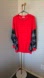 Stylish red sweater with plaid sleeves. Perfect for a cozy look. Excellent condition, brand new, size large!