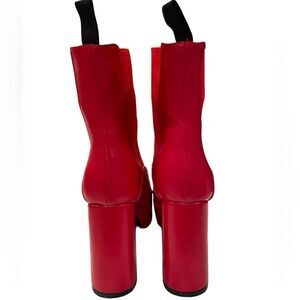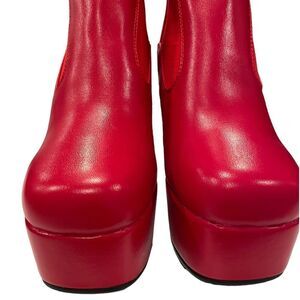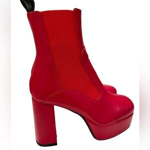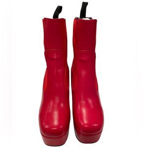 Step out in style with these vibrant red platform ankle boots. Perfect for adding a bold touch to any outfit. New.