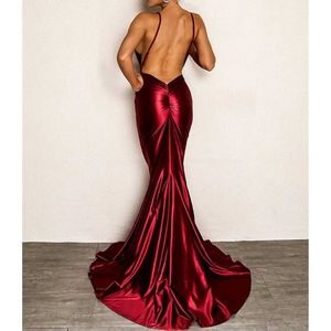 Red Plunge Open Back Mermaid Evening Satin Dress
