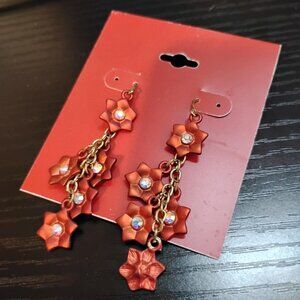 Red Poinsettia Dangle Earrings. NWT. Hook Back. For Pierced Ears. Very Festive.