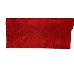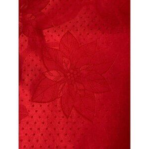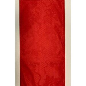 This red table runner, adorned with a poinsettia pattern, adds elegance to holiday settings. Its polyester material ensures durability and easy maintenance.