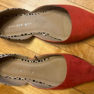 Red Pointed Toe Flats w/ Leopard Print Back. Business in front; party in back!