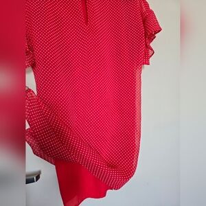 Chic and playful, this red polka dot mini dress is perfect for any occasion. The lightweight fabric and flutter sleeves add a touch of elegance. A must-have for your wardrobe.