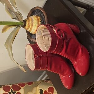 Stylish red polka dot top paired with classic denim overalls. Perfect for a casual day out. parrot with cute red patton leather boots, a belt, your choice of converse and a little bolero jacket for the evenings