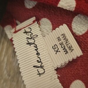 Red polka dot shirt is XS and is made in Vietnam by Thoughtful