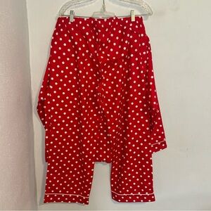 Enjoy a cozy night's sleep in this stylish red polka dot pajama set. Perfect for lounging or bedtime.