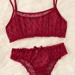 Red Polka Dot Lingerie Set • Mesh Bikini Style Lingerie Outfit
