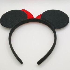 Cute headband with red polka dot bow and black mouse ears. Perfect for themed events.