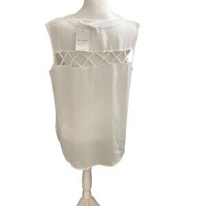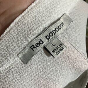 Red Popcorn Sleeveless White Top With Zipper Front & Lattice Back Detail Size L