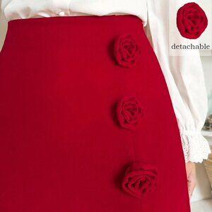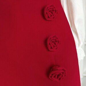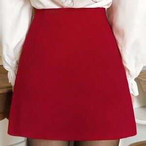 Red Preppy Womens Solid Color Valentine's Day Mini A-Line Skirt