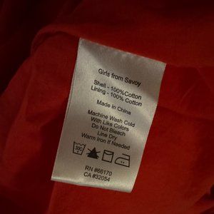 Adorable twee red print midi dress with white trim and details. Worn by Jessica Day in the pilot episode of New Girl. Perfect for any New Girl fan.