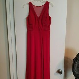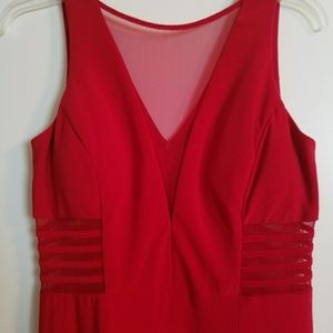 New without tags. Beautiful red dress. Perfect for any special occasion like Prom or a Military Ball. Mesh covered deep V cut it the front as well as cutouts on the sides.