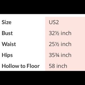fits like a 2/4... im a size 32 C cup wnd 5’6” !!!
