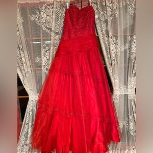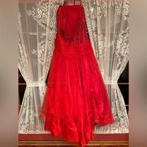 Size 16- love this dress! Wore once for prom. Ties in the back. Will come in protective zipper bag. Poofy on the bottom.
