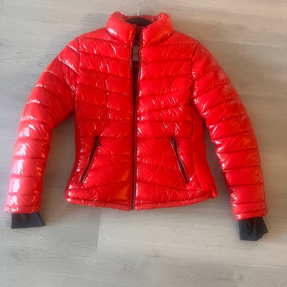Stay warm and stylish with this vibrant red puffer jacket. Perfect for chilly days.