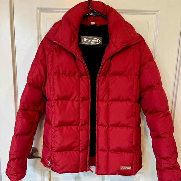 Stylish red NY TECH women’s M puffer jacket filled with down and feathers. Perfect for cold weather. Like new condition. Super warm jacket.