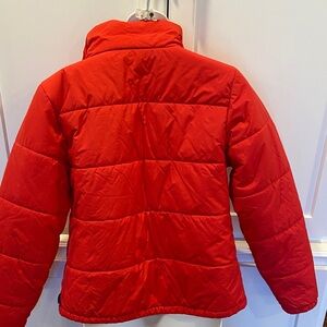 Stylish CHERRY, red REI puffer jacket with a zip-up front and side pockets. Perfect for staying warm and fashionable. Worn one season. Also has one inside pocket.