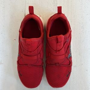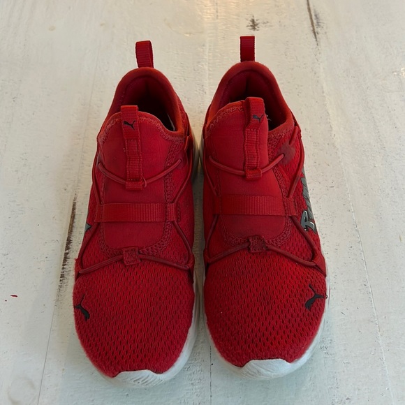 Boys red Pumas. Slip on. Gently worn. Size 2.5.