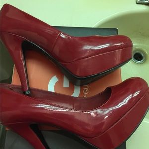 Red patent leather pumps with 4” heel 2” platform. For a very sexy look. Reasonable offers. Pristine condition. Worn once.
