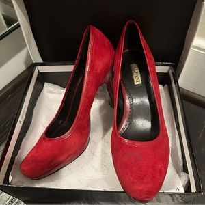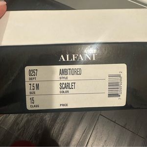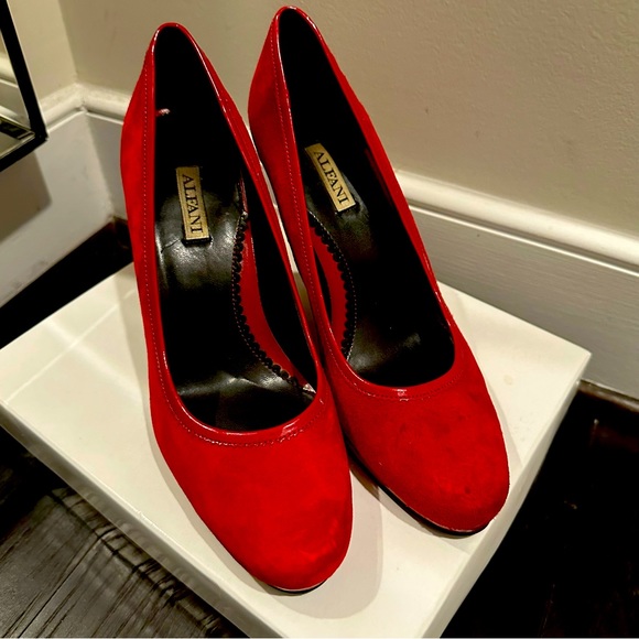 Alfani red closed toe heels. Size 7.5. Come with box! A couple stains as shown, but have plenty of life left!